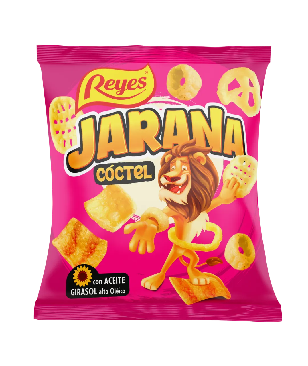 Harina de maíz, aceite de girasol alto oleico, sal, aroma sustancias aromatizantes, suero de LECHE, sal, potenciador del sabor (E-627) y colorantes (oleorresina de pimentón y oleorresina de cúrcuma), aroma de humo, acidulante (E-330), maltodextrina, sal, antipelmazante (E-551), etanol, propilenglicol, almidón (e-1450), extracto de romero, aceite vegetal, potenciadores del sabor (E-627, E-631), colorantes (E-160c, E-160b, E-100i) y azúcar, dextrosa, aspartame, harina de TRIGO, fécula de patata, almidón de maíz, harina de patata, azúcar, sal, colorante (betacaroteno). Aspartame «contiene una fuente de alanina».